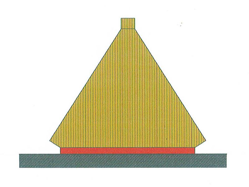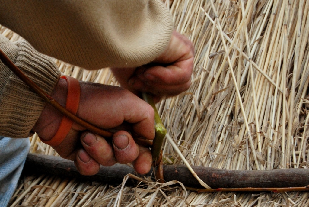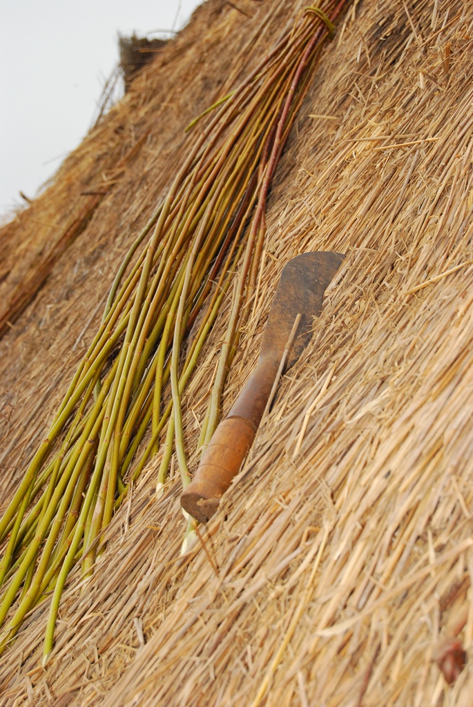 A forma tradicional de cobertura das casas consiste em colocar o colmo na vertical começando de baixo para cima. Os maranhos são dispostos uns junto aos outros e sobrepostos, para assegurar o isolamento.