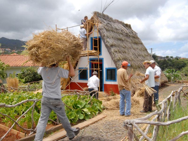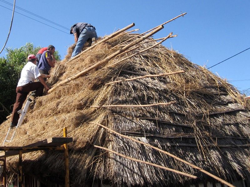 Substituição do colmo de uma Casa Típica